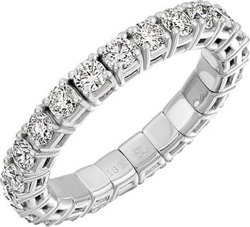 A stretchy design gives modern ease to a tennis ring handcrafted with round diamonds.