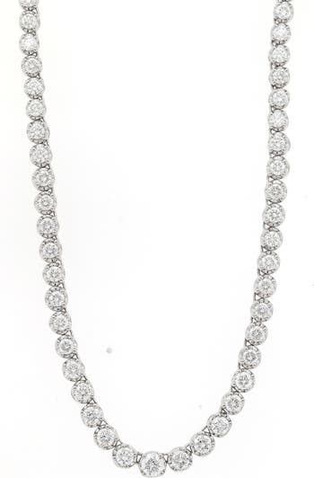 Beam brilliance from your neckline with this handcrafted tennis necklace featuring 127 round diamonds prong-set in 18-karat gold.