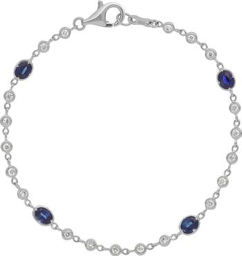Four stations of faceted gemstones add to the illumination of this handcrafted bracelet linked by bezel-set diamonds.