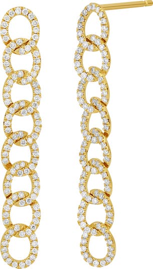 Chains glowing with diamond pavé bring bright movement to your lobes in these drop earrings handcrafted from 18-karat gold.