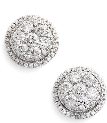 An elegant finish to evening looks, these refined diamond halo earrings are made from 18-karat gold and 88 sparkling diamonds.