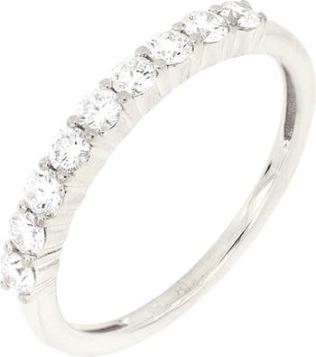 Twinkling white diamonds nestle between shared prongs, crowning an elegant ring that's perfect for stacking with other styles or wearing on its own.