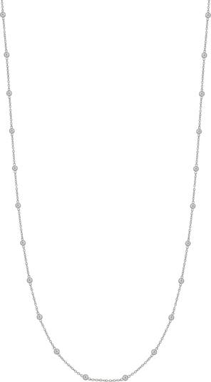 A long fidalgo chain is stationed with 29 bezel-set round-cut diamonds, adding sparks of light to the subtle gleam of this 18-karat-gold handcrafted necklace.
