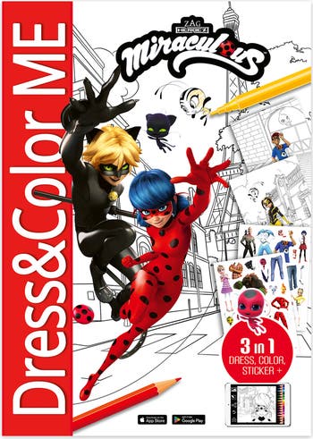 BOOK N APP PAPPLISHING HOUSE: MIRACULOUS DRESS & COLOR ME - Create your own Miraculous adventures with this Dress & Color ME 3-in-1 activity book designed for kids ages 4 and up. Featuring favorite heroes from Miraculous, this activity book brings action-packed storytelling and creative fashion fun together in one exciting format. 3-IN-1 FORMAT: This creative format combines dress-up fun, coloring pages, and sticker play in one engaging experience. Multiple activities in one book make it perfect for at-home play, travel, or anytime creative entertainment is needed. DRESS & STYLE: Style your favorite heroes and characters using dress-up elements and lots of stickers, then bring exciting scenes to life with coloring pages that inspire imaginative storytelling. The combination of dressing, coloring, and decorating keeps children actively involved in creative play. INCLUDES FREE APP: The included free app extends the experience beyond the book. Kids can color content digitally and unlock additional coloring pages to print at home. The app is ad-free and does not collect personal data, offering a safe digital extension for children. MAKES A GOOD GIFT: A great gift for Miraculous fans who love action, creativity, and character design. INCLUDES: 1 Color & Sticker Book.