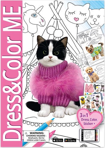 BOOK N APP PAPPLISHING HOUSE: CUTE ANIMALS DRESS & COLOR ME - Discover adorable animal styling fun with this Dress & Color ME 3-in-1 activity book designed for kids ages 4 and up. Filled with charming animal characters and playful scenes, this book encourages creativity and imaginative play from the very first page. 3-IN-1 FORMAT: This creative format combines dress-up fun, coloring pages, and sticker play in one playful experience. Multiple activities in one book make it perfect for quiet time, travel, or screen-free entertainment at home. DRESS & STYLE: Dress and accessorize cute animal characters using lots of stickers, then color engaging scenes that inspire imaginative storytelling. The combination of dressing, decorating, and coloring provides hands-on creative activity. INCLUDES FREE APP: The included free app extends the experience beyond the book. Kids can color content digitally and unlock additional coloring pages to print at home. The app is ad-free and does not collect personal data, offering a safe digital extension for children. MAKES A GOOD GIFT: A great gift for children who love animals, creative styling, and coloring fun. INCLUDES: 1 Color & Sticker Book.