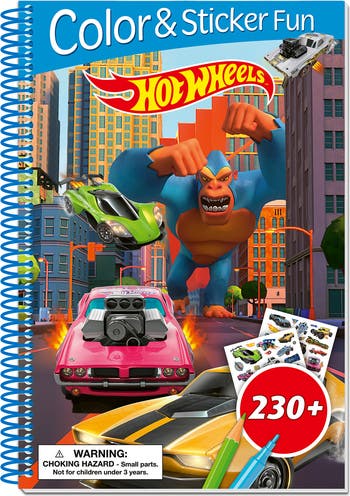 BOOK N APP PAPPLISHING HOUSE: HOT WHEELS STICKER & COLORING BOOK - Rev up creative play with this Hot Wheels Sticker & Coloring Book from the Color & Sticker Fun series. Featuring classic racing designs inspired by Hot Wheels, this book lets kids imagine high-speed adventures and custom race teams. REUSABLE STICKERS: Designed for kids ages 4+, it combines action-packed coloring pages with over 230 reusable stickers. 3D EFFECT: The lenticular cover displays a shifting 3D effect that changes when tilted, adding depth and visual appeal. Inside, kids can color high-speed cars and build exciting race scenes using repositionable stickers that can be rearranged again and again. SCREEN-FREE ENTERTAINMENT: Ideal for travel, rainy days or screen-free entertainment, this activity book keeps young racing fans engaged while inspiring imaginative play. Reusable stickers and coloring pages encourage hands-on creativity, making every adventure unique. MAKES A GREAT GIFT: A great gift for kids who love fast cars, racing action and creative fun. INCLUDES: 1 Activity Book (56 Pages, Including 2 Sticker Pages) with Reusable Stickers.