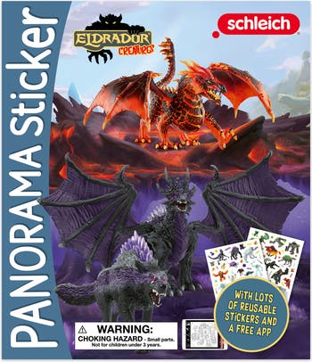 BOOK N APP PAPPLISHING HOUSE: SCHLEICH ELDRADOR PANORAMA STICKER BOOK - Enter the action-packed world of Eldrador with this Panorama Sticker Book for kids ages 4 and up. Featuring characters and creatures inspired by the fantasy worlds of Schleich, this book lets children immerse themselves in epic adventures and creative storytelling. EXTRA-WIDE SCENES: The panoramic spreads extend across two continuous pages, creating large, detailed battle scenes ready to be brought to life with stickers. The extra-wide backgrounds offer more room than traditional sticker books, allowing children to build their own adventures and arrange characters freely across the scene. INCLUDES FREE APP: The included free app offers additional coloring pages that can be printed at home, extending the creative experience beyond the sticker book. The app is ad-free and does not collect personal data. MAKES A GOOD GIFT: A great gift for fans of epic battles and imaginative fantasy adventures. Ideal for birthdays, holidays, or as a fun surprise for creative kids. INCLUDES: 1 Sticker Book.