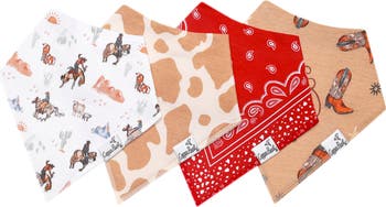 Protect baby's clothes from drooling and spills with these bandana bibs made of a soft cotton knit with an absorbent fleece backing.