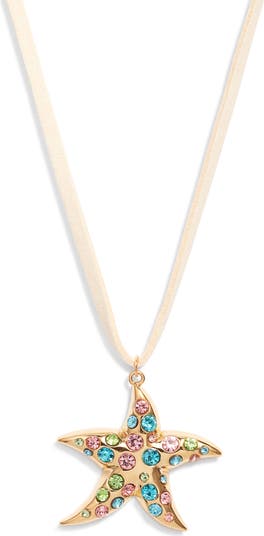 A sea star pendant glints with cubic zirconia in this beachy necklace strung on soft suede.