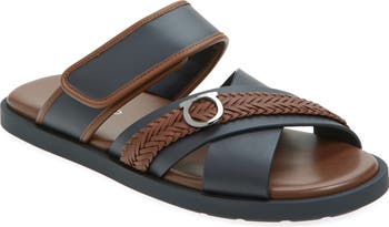 A logo-engraved Gancio buckle puts a house-signature finish on this Italian-crafted sandal detailed with an artfully braided leather strap.