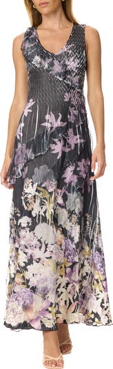 From suitcase to sensational entrance, this wrinkle-resistant combo of charmeuse and chiffon is cut into a ruffled maxi dress that will never show its mileage |Sleeveless Charmeuse Ruffle Dress