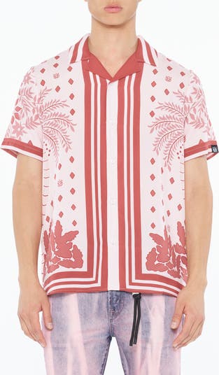 Cult of Individuality Border Print Short Sleeve Cotton Button-Up Shirt, Alternate, color, Retro