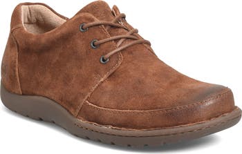 A padded collar envelops a handmade distressed-suede derby structured with a cushioned insole with unbeatable arch support.