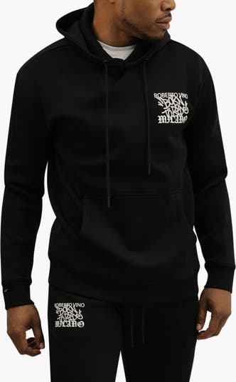 - Construction: Adjustable drawstring hood with branded lace tips; front kangaroo pocket, ribbed hem and cuffs