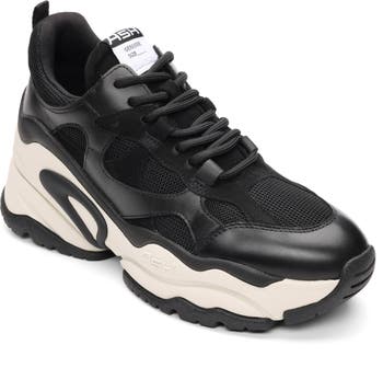 Sporty style meets modern sophistication in this lofty sneaker featuring a caged leather design boasting breathable mesh panels and a hidden wedge heel.