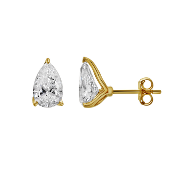 Brilliant 2.07 carat Pear Shaped lab grown diamond solitaire earrings showcased in an amazing 3 prong basket setting. Crafted in 14K gold with a premium push back post which combines timeless elegance with comfortable wear.