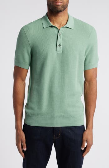 Fine-gauge rack stitches bring texture to this soft polo knit from a cozy cotton and lyocell blend.