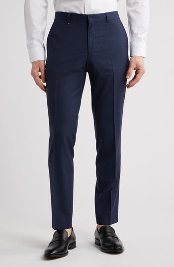 A crisp microcheck brings distinctive detailing to slim-tailored dress pants that are crafted with breathable wool and lightly brushed for softness. Flat-front styling and crisp creases down the legs make them a smart complement to any semiformal look.