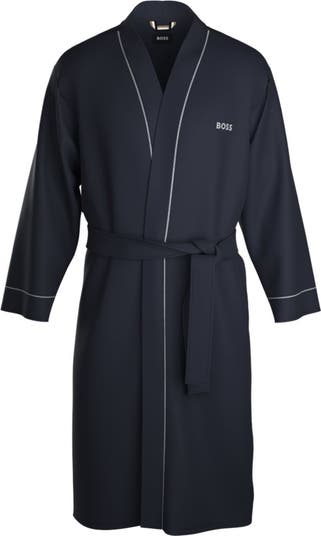 The soft, welcoming comfort of cotton keeps you comfortable out of the shower or throughout the afternoon in a robe that's trimmed smartly in slim piping.