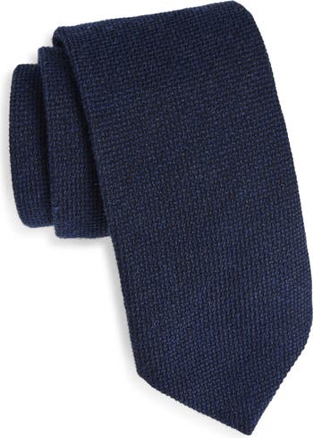 A textured blend of wool and silk styled in a true solid brings effortless versatility to a tie that pairs easily with elevated-casual and semiformal looks alike. The dark coloring looks right at home with patterns and other solids and adds a smart finish to any outfit when the weather cools.