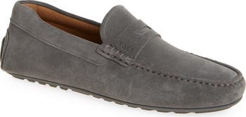 Embrace luxe modern style with this smooth suede penny loafer grounded by a flexible, traction-enhancing sole.