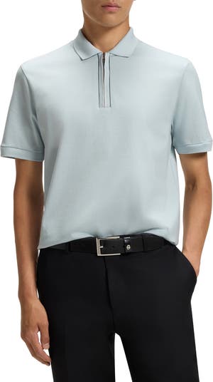 Tipping at the quarter-zip placket adds a sporty touch to this otherwise classically styled polo cut from a smooth cotton knit that breathes for cool comfort all day.