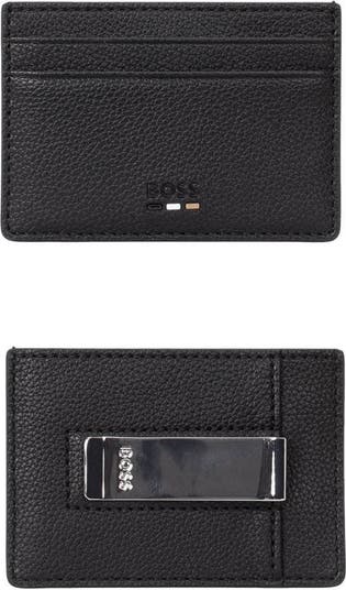 A logo-embossed money clip holds your currency in place on this slim case perfect for storing your important cards.