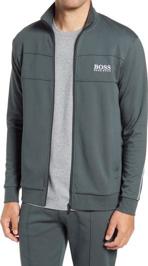 A matte zipper pull and bold logo energize this piqué track jacket sporting a lightweight fit that makes it great for layering.