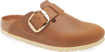 Nubuck leather defines a classic Birkenstock clog that's made in Germany and fitted with a contoured cork footbed for superior comfort.