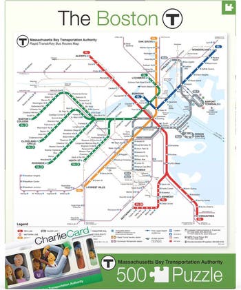 Boston T - Boston Subway Map\r\n 500 Piece Jigsaw Puzzle\r\n Made in the USA\r\n Recommended Age: 10+ Years