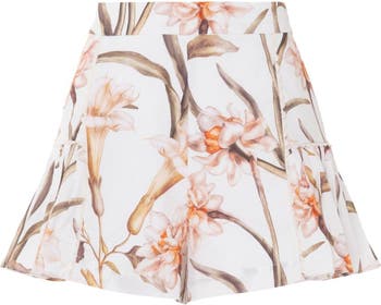 - The Botanic Retro Shorts blend vintage charm with modern sophistication. Crafted from lightweight poplin, they offer comfort and breathability—ideal for warm, sunny days. The flared, flowy silhouette allows for effortless movement, while pleated details and delicate trim add a unique, handcrafted feel. Finished with an invisible back zipper for a polished fit.