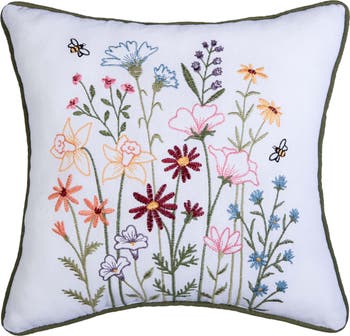 Botanical Blooms Bee Embroidered Throw Pillow, 12" x 12"