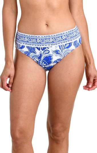 A boho scarf-inspired print amplifies the island-ready vibes of these high-waist bikini bottoms.