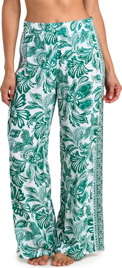 Designed with a breezy wide-leg silhouette, allover blossoms and boho beach ease, these cover-up pants are perfect for lounging in style.