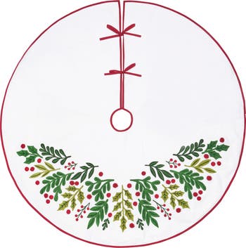 - Create a festive foundation for your holiday décor with this 54" Botanical Holly Leaves & Berries Cotton Christmas Tree Skirt. Ideal for both real and faux trees, it completes your seasonal display with warmth and charm for family gatherings and winter celebrations.