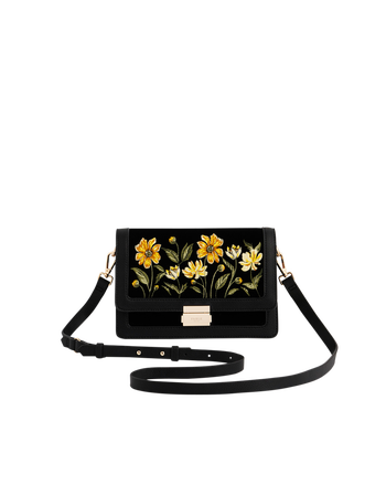 Carry your treasures in a tale stitched with elegance and quiet romance. Our Black Botanical Velvet Embroidered Foldover Bag evokes the charm of a storybook garden, where golden blooms glow softly against black velvet. The detachable shoulder strap allows you to wander from day to evening, making this piece a versatile companion for every chapter of your journey.