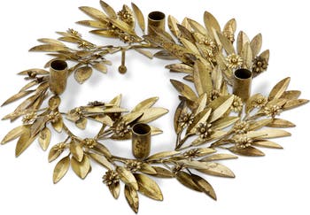 Botanical Wreath Taper Candle Holder Antique Gold Iron
