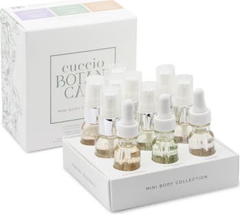 Botanicals Mini Body Collection is a 9 piece trial set for you to explore your moods and senses. Scent collections include: Sandalwood & Sage (Renew + Reset), Eucalyptus & Montana Flower (Energize + Uplift) and Lavender & Rosemary (Calm + Relax). Set Includes: 3 CUTICLE OILS .35oz 3 BODY OILS 1oz. 3 HAND & BODY WASHES 1oz.