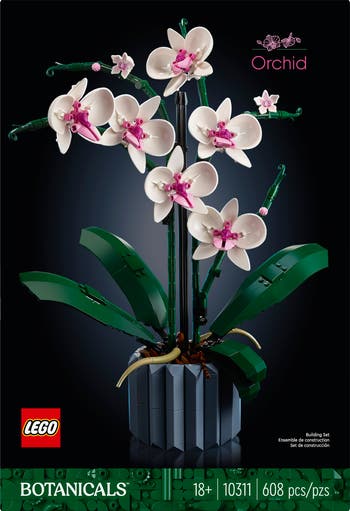 Enjoy a mindful building project and create a beautiful plant display for your home with this LEGO Orchid model building project for adults. Take your time crafting all the details of the white and pink flowers and the vase. Inspired by a real orchid, the model has five leaves at the base and two wandering air roots to create an authentic display. Build the blue fluted vase and fill it with the brown LEGO elements to recreate the bark mix that a real orchid would grow in. Pose your orchid in a variety of ways by rotating the stems, blooms, roots, and leaves of the model to achieve the perfect look. Or personalize your display by rebuilding the stems to create new combinations of flower arrangements.
