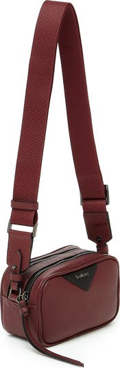 A dual-compartment design elevates the everyday versatility of this compact leather bag styled with interchangeable straps that offer carrying options.