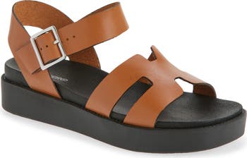 Geometric cutouts bring subtle dimension to a Brazilian leather sandal grounded by a cushioned footbed and chunky platform sole.