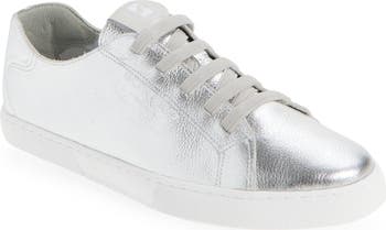 Lustrous metallic leather highlights the low-profile silhouette of a Brazilian-made sneaker grounded by a cushioned footbed and flexible cupsole.