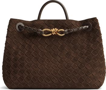 Italian for 'let's go,' this aptly named shoulder bag made in the label's iconic intrecciato weave makes for an essential bag you'll want to carry everywhere. Golden knot hardware brings signature shine to the shoulder strap of this suede style.