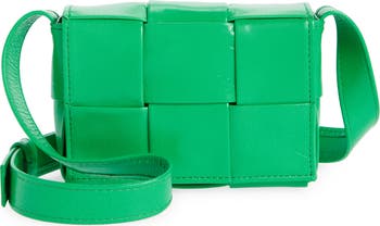 The brand's iconic intrecciato weave done on a larger scale brings major texture to this mini bag suspended from an adjustable crossbody strap.