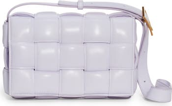 The brand's iconic intrecciato weaving looks bigger and bolder on this crossbody bag handcrafted using padded calfskin strips backed with soft nappa. Triangular hardware at the strap adds another signature touch.