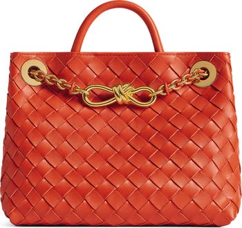 Italian for 'let's go,' this aptly named shoulder bag made in the label's iconic intrecciato weave with a dual-compartment interior makes an ideal everyday bag. Your carrying options are doubled by a rolled top handle and pull-through woven chain strap.