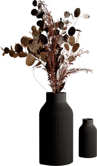 Modernized design The BOTTLE Vase was created to evoke timeless elegance, drawing inspiration from the simplicity of classic bottle forms. Its sleek silhouette and vertical ribbed texture bring a refined, minimalist aesthetic, making it the perfect vessel to elevate any floral arrangement. Fully watertight when using the removable waterproof insert. Made from 98% Plant-Based Materials | BioPlastic & Wood Fibers