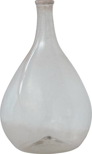 This glass bottle vase is a blend of functionality and aesthetic appeal. Its 11-inch height and 6.25-inch diameter make it an ideal choice for those who appreciate understated beauty. The 1.25-inch round opening is perfect for holding delicate blooms or branches, adding a natural element to the decor. Whether placed on a rustic farmhouse table, a chic French Country buffet, or amidst vintage treasures, this vase stands out for its clarity and simplicity. It's a timeless piece that invites creativity and brings a serene ambiance to any room it graces.