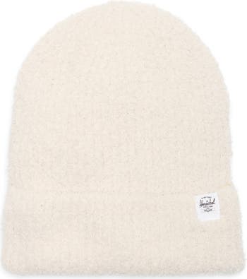 Enjoy the warm comfort and snug fit of this cuffed beanie knit from soft boulcé yarns for a fun, fuzzy look.