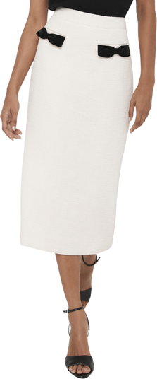 Bouclé Midi Skirt Featuring Contrast Bow Detailing, Rear Split And A Zip Fastening Through The Back.